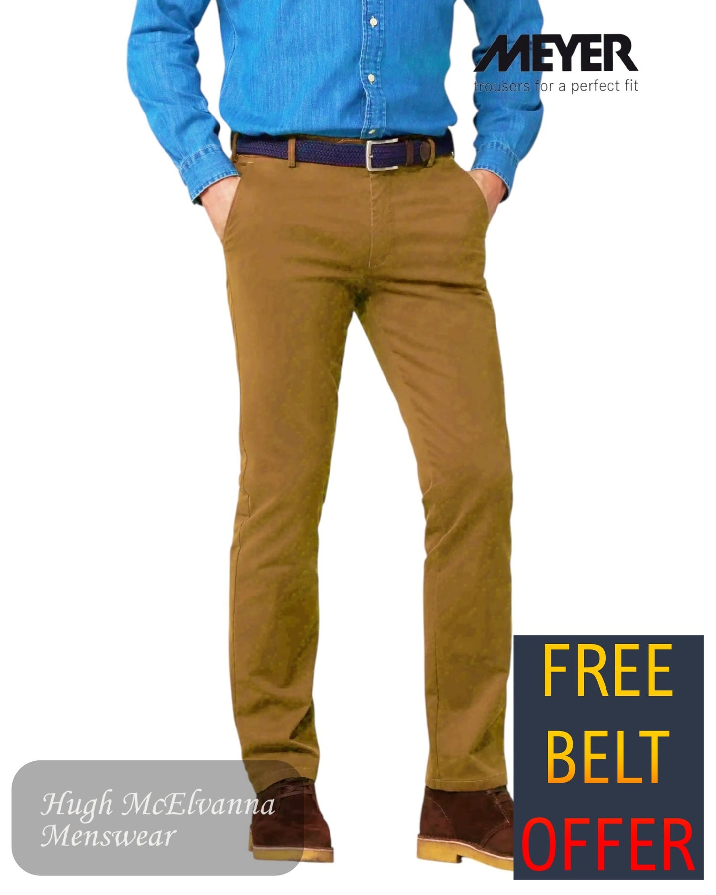 Upgrade your everyday style with the Meyer ROMA 316/43 CARAMEL Chino—where timeless elegance meets sustainable fashion. Perfect for both casual and business settings, these chinos are a must-have for the modern gentleman.