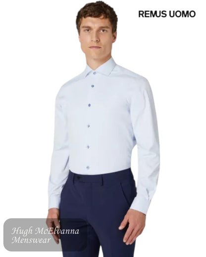 Remus Uomo Tapered Fit Stretch Dress Shirt – Stretch Formal Shirt for Business & Casual Wear (White, Light Blue, Mid Blue, Navy)