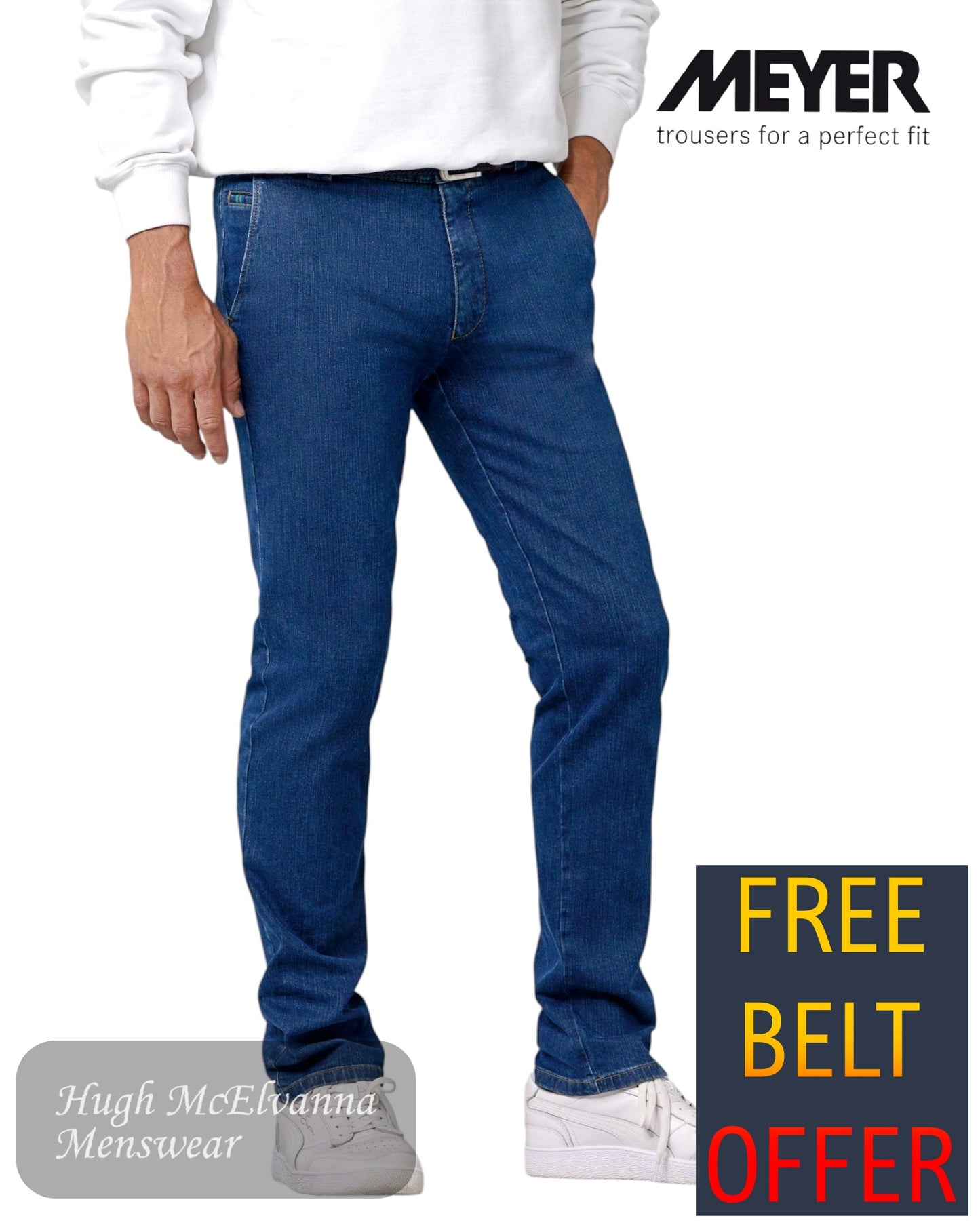Step into refined comfort with the Meyer ROMA 629-20 Stonewash Denim Trouser – a wardrobe essential for the modern gentleman who values tradition, quality, and everyday sophistication. This classic denim piece is tailored in Meyer’s signature ROMA fit, blending timeless design with innovative performance fabric.
